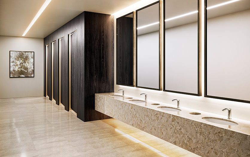 安装在公共卫生间和酒店客房浴室中的GC系列水嘴,将古典风格融入简洁的现代造型中。请尽享GC系列与内装风格