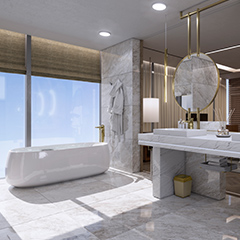 酒店卫浴空间采用了白色大理石墙壁和地板,简洁而优雅。