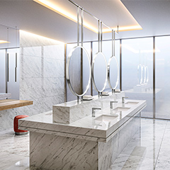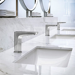 酒店客房也使用了相同的设计并采用非接触式感应水嘴。