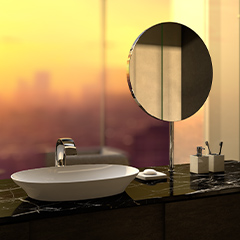 穿过客厅,眼前出现的是大面积的落地窗和设置于窗边的卫浴空间,让人感觉飘然如临云端。