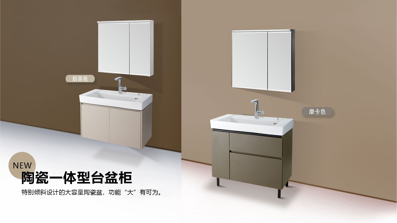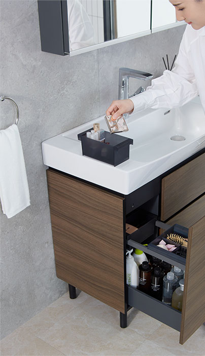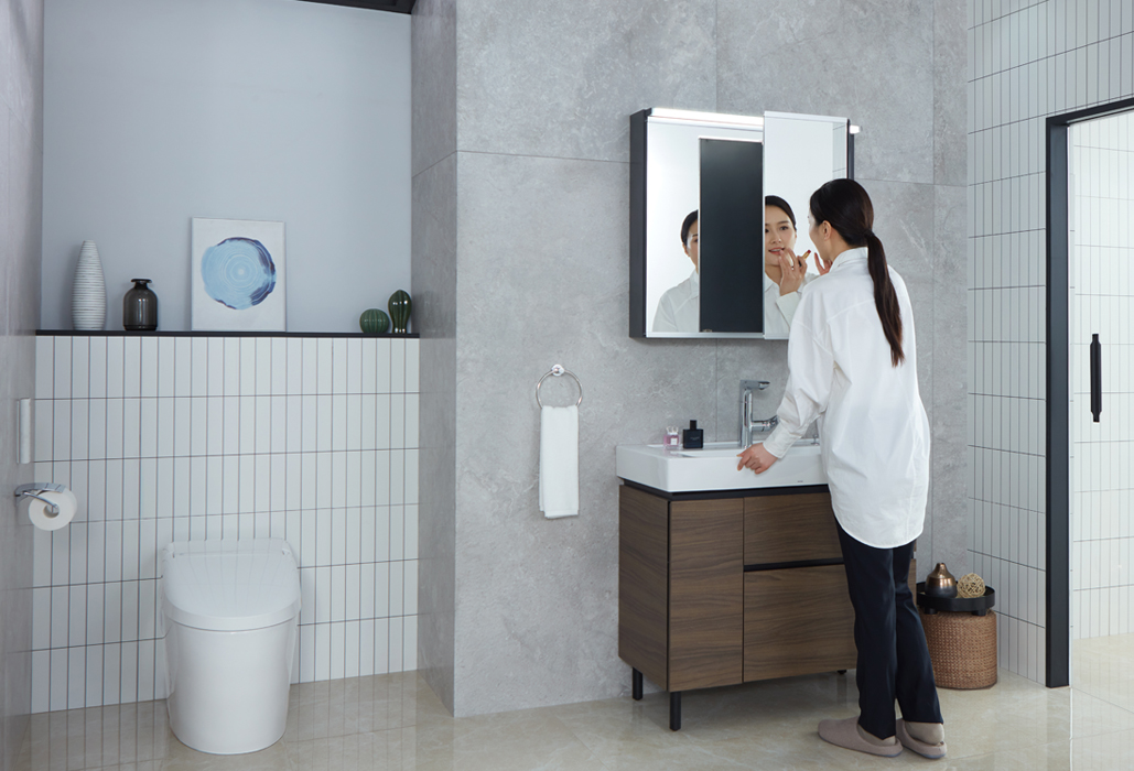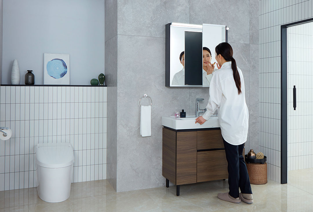 现代简约的设计风格,深浅木纹双色可选,适合不同风格的卫浴空间。