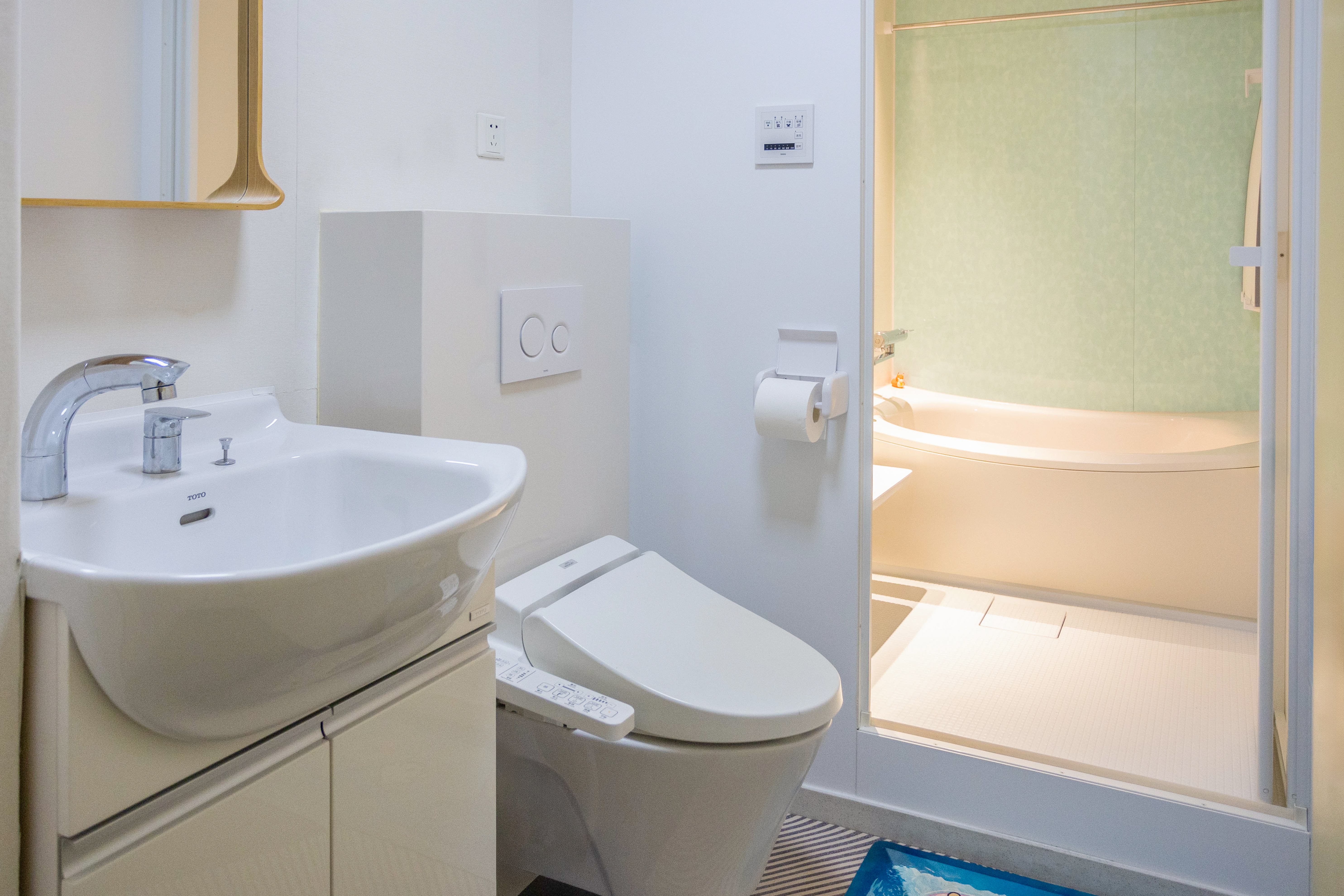A:我认为是干湿分离的设计。像本次通过使用TOTO整体浴室,可以完成小平方卫生间2个人同时使用湿区的整体浴室和干区的座便器、洗面柜。既提升了使用效率,又通过易清洁折叠门保障了私密性,高度适配现代年轻人的快节奏生活。