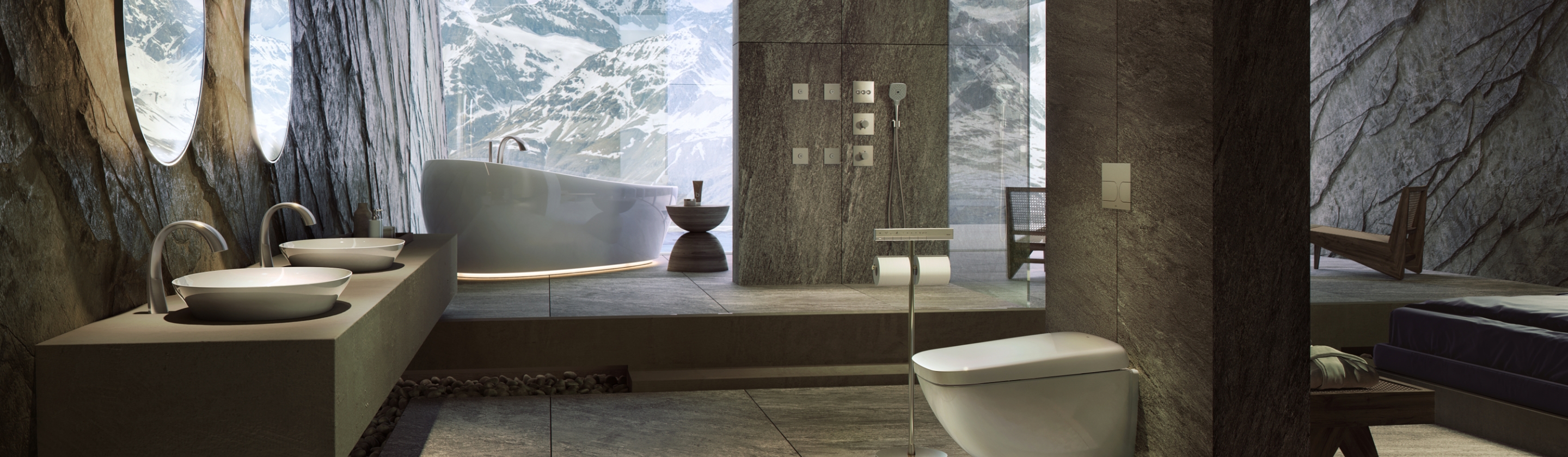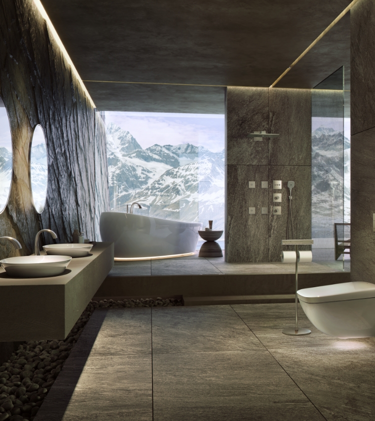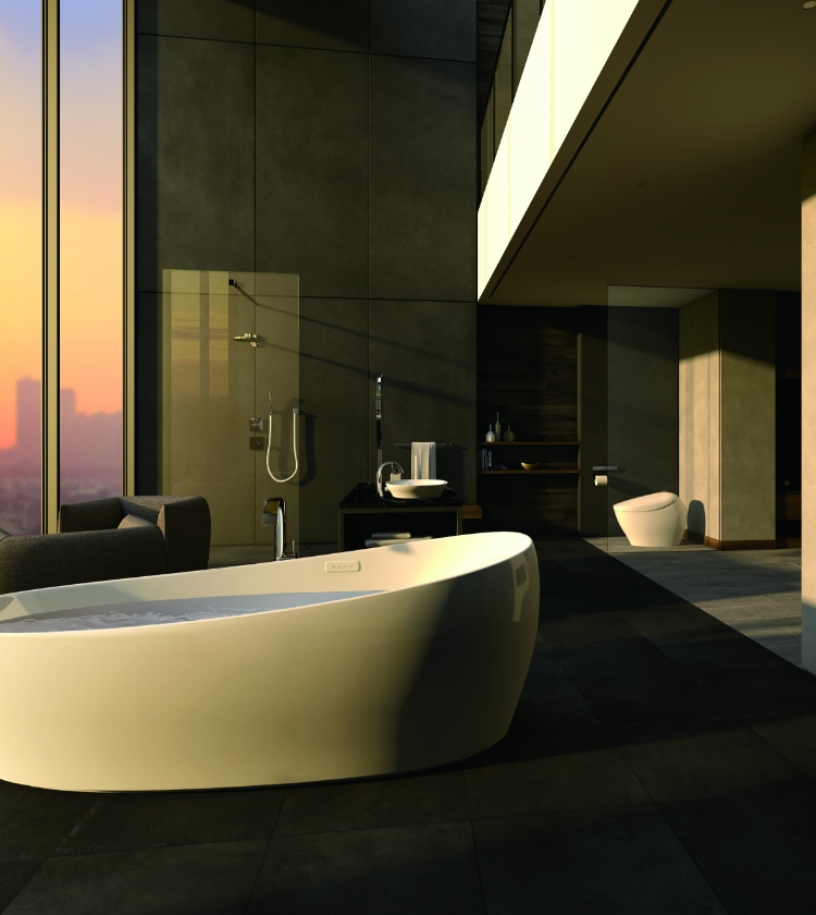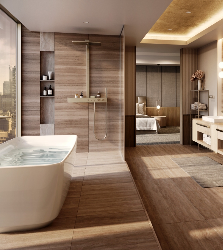 出水口与手柄采用大胆的拱形设计,与曲面反射交相辉映,创造出令人印象深刻的空间。
