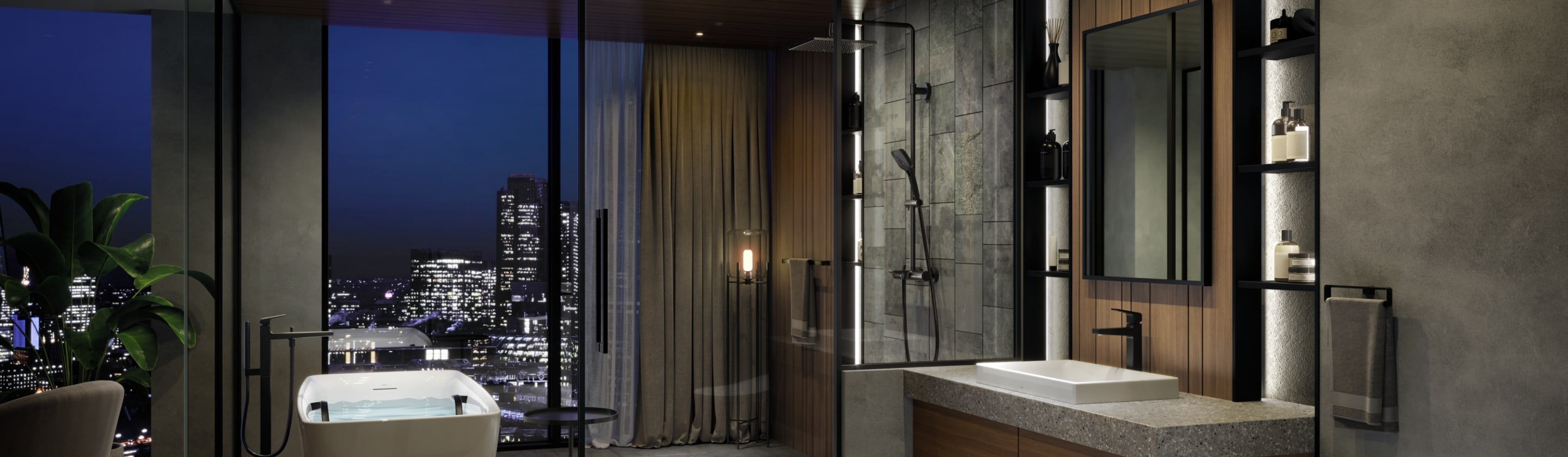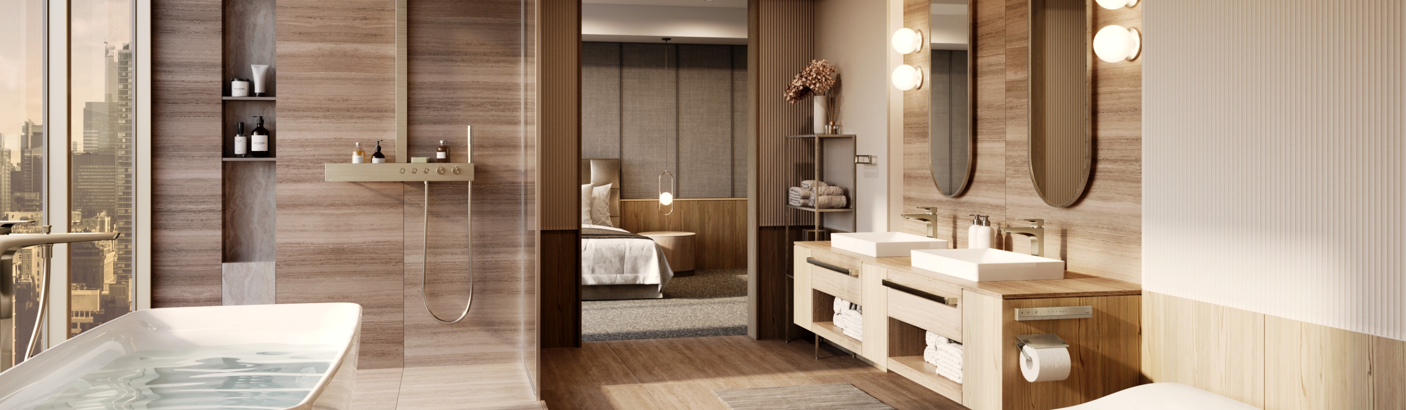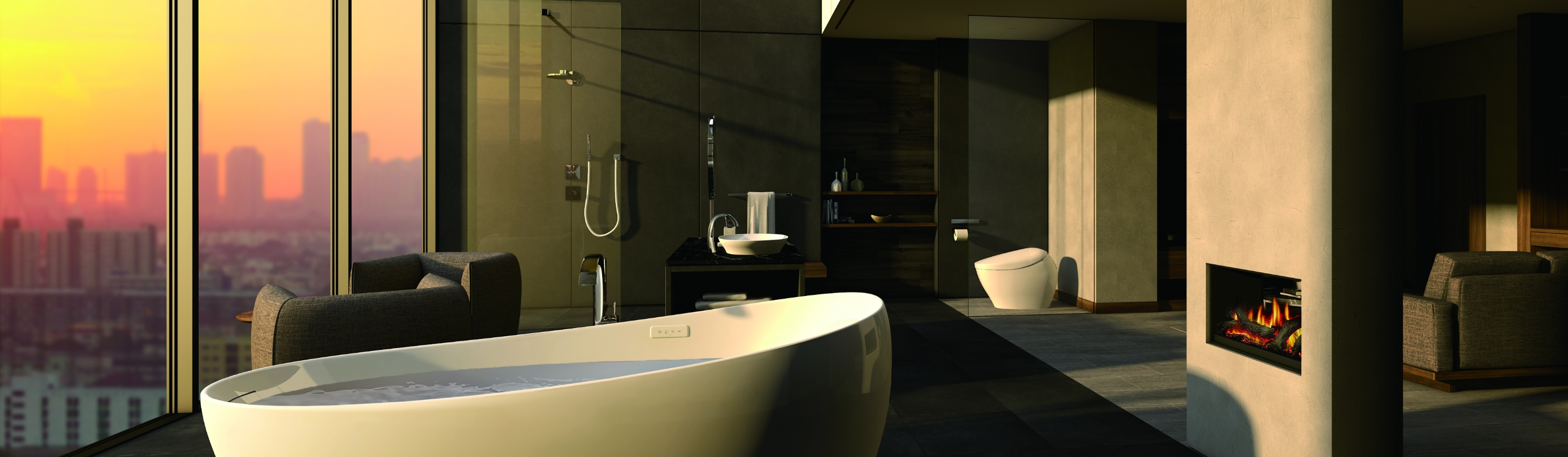 出水口与手柄采用大胆的拱形设计,与曲面反射交相辉映,创造出令人印象深刻的空间。