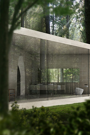 然后,可以再次浸泡在探出于森林中的露台上的浴缸,让身体从重力中解放出来;